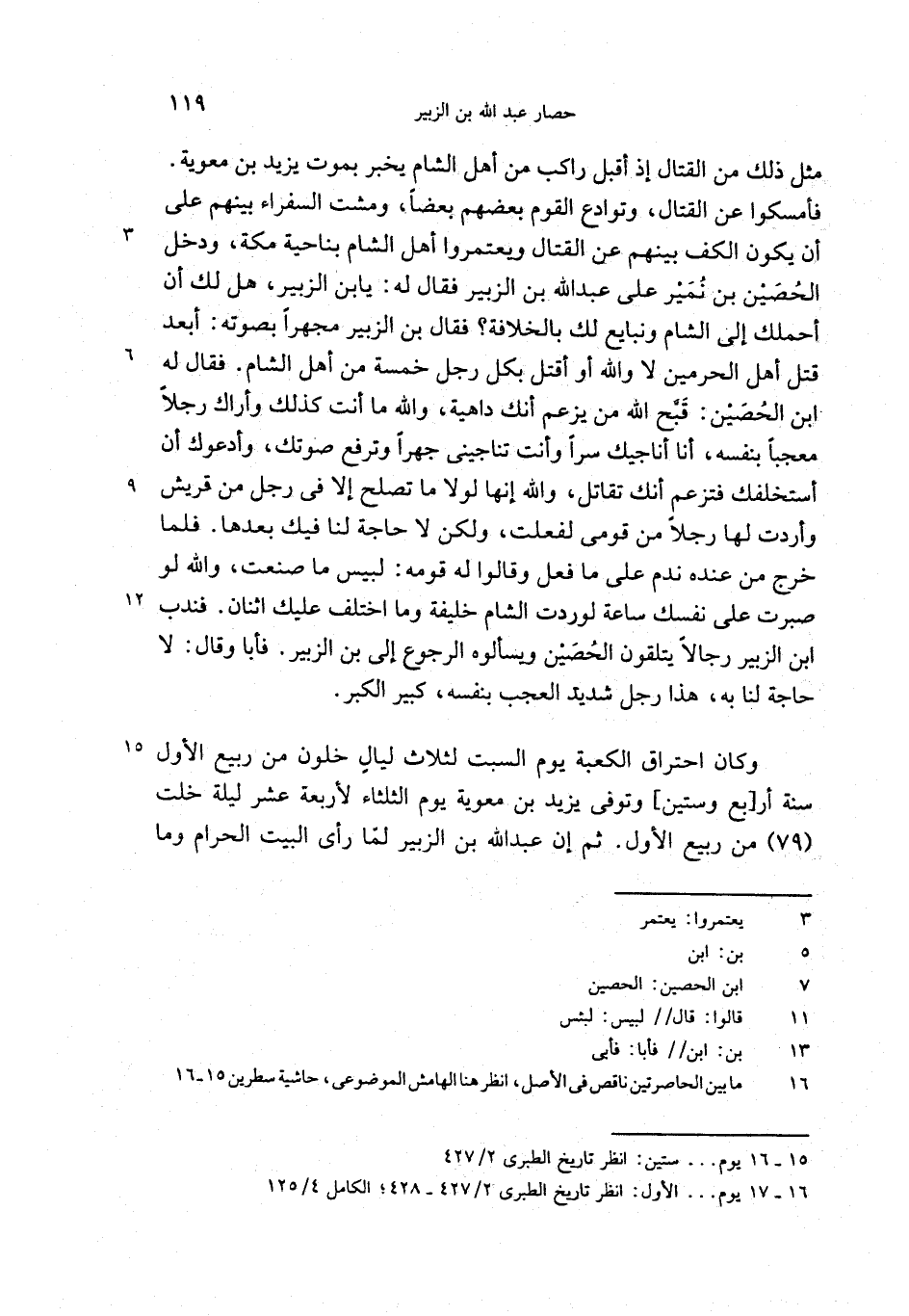 (16 - 17) يوم. . . الأول: انظر تاريخ الطبرى 2/ 427 - 428؛ الكامل 4/ 125
