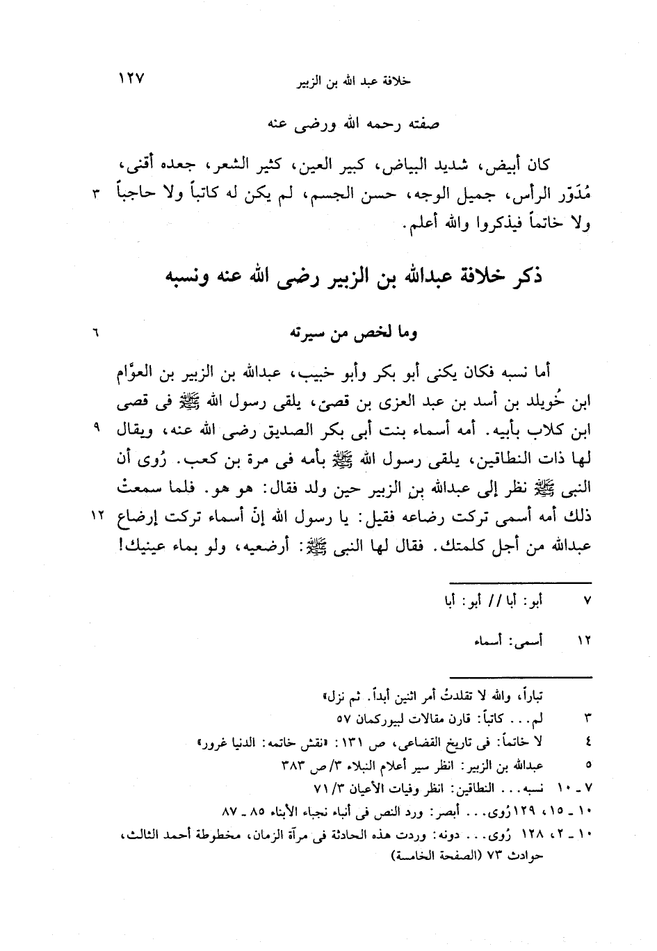 (5) عبد الله بن الزبير: انظر سير أعلام النبلاء 3/ص 383