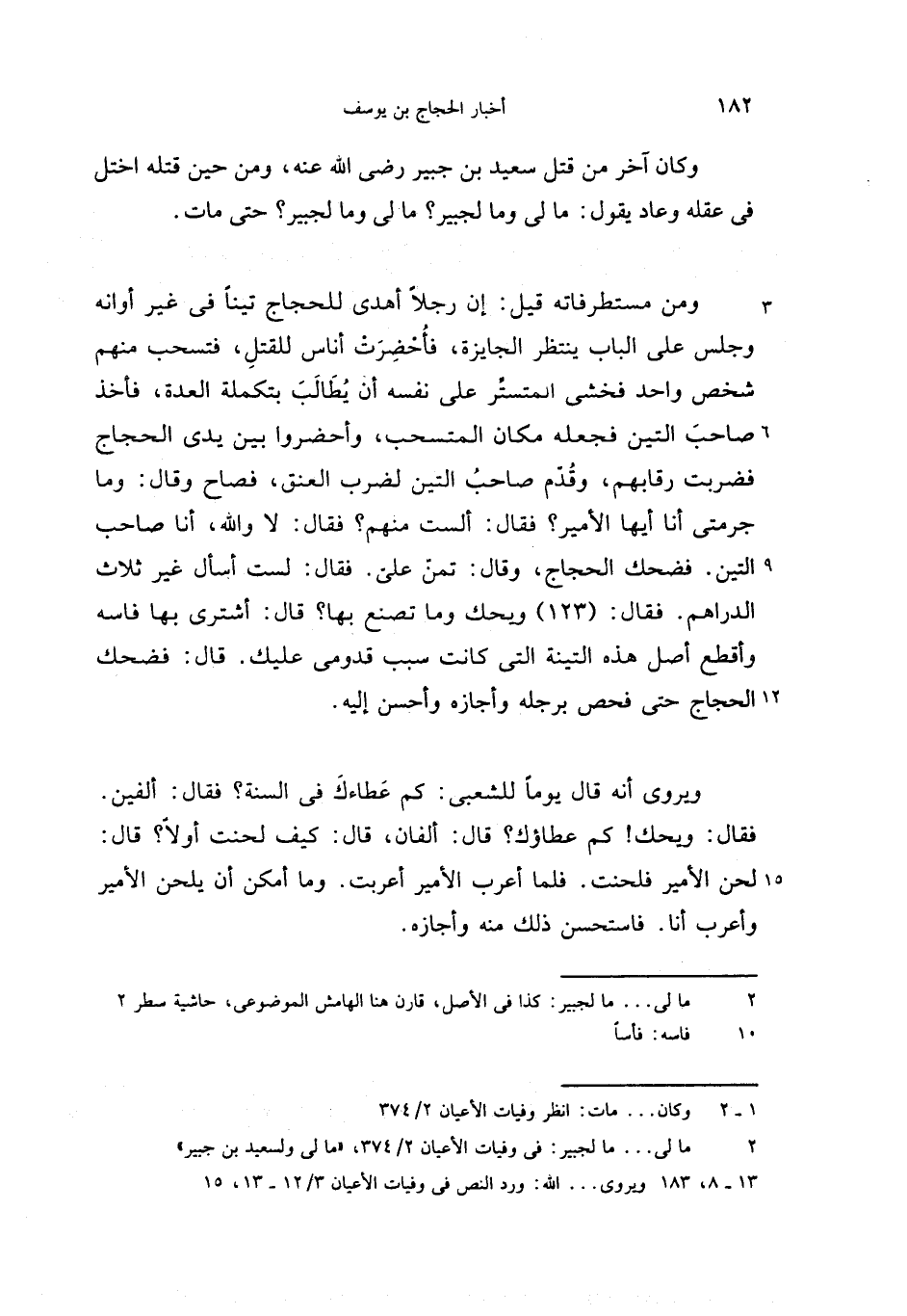 (2) ما لى. . . ما لجبير: فى وفيات الأعيان 2/ 374، «ما لى ولسعيد بن جبير»