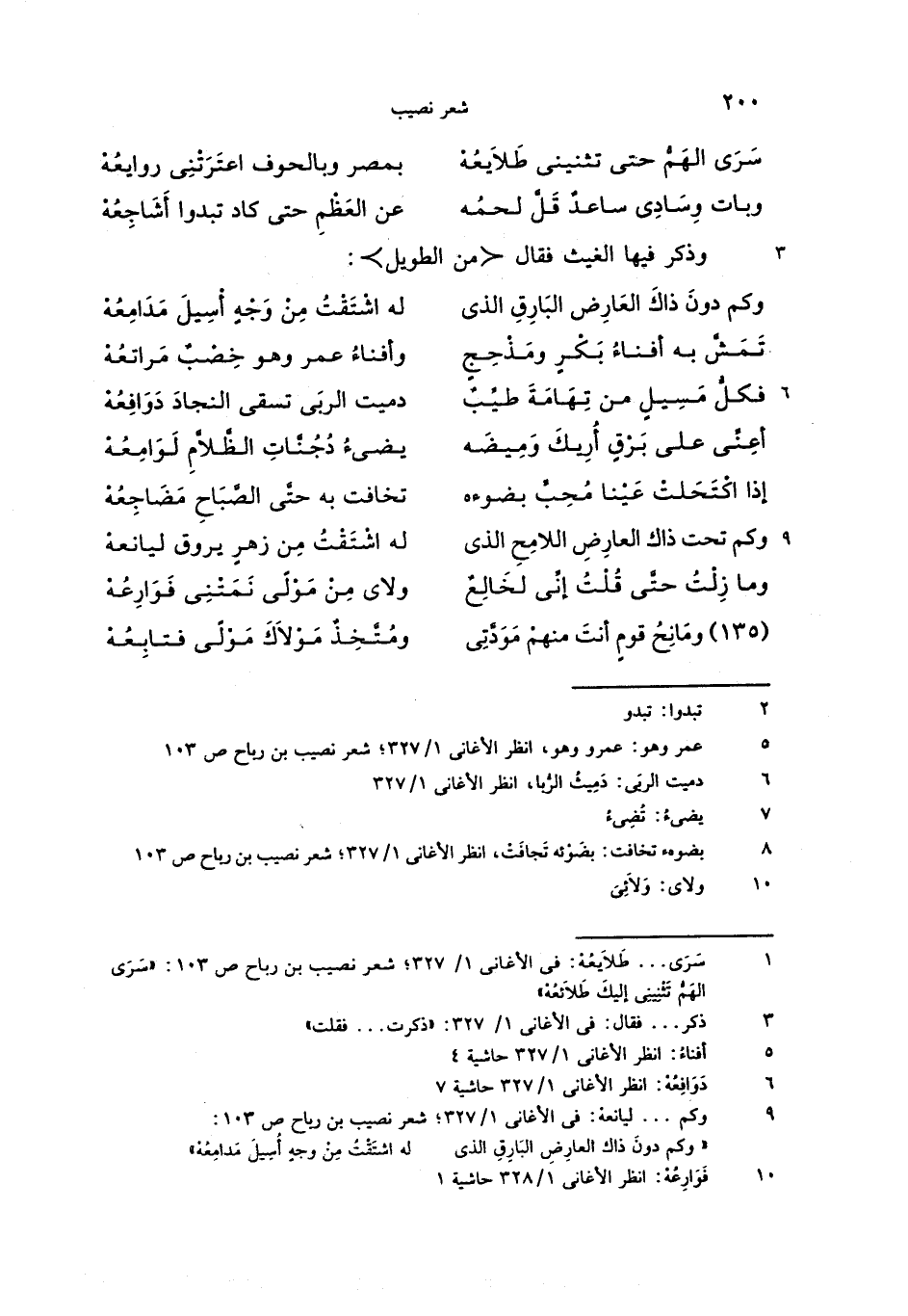 (1) سرى. . . طلايعه: فى الأغانى 1/ 327؛ شعر نصيب بن رباح ص 103: «سرى الهمّ تثنينى إليك طلائعه»