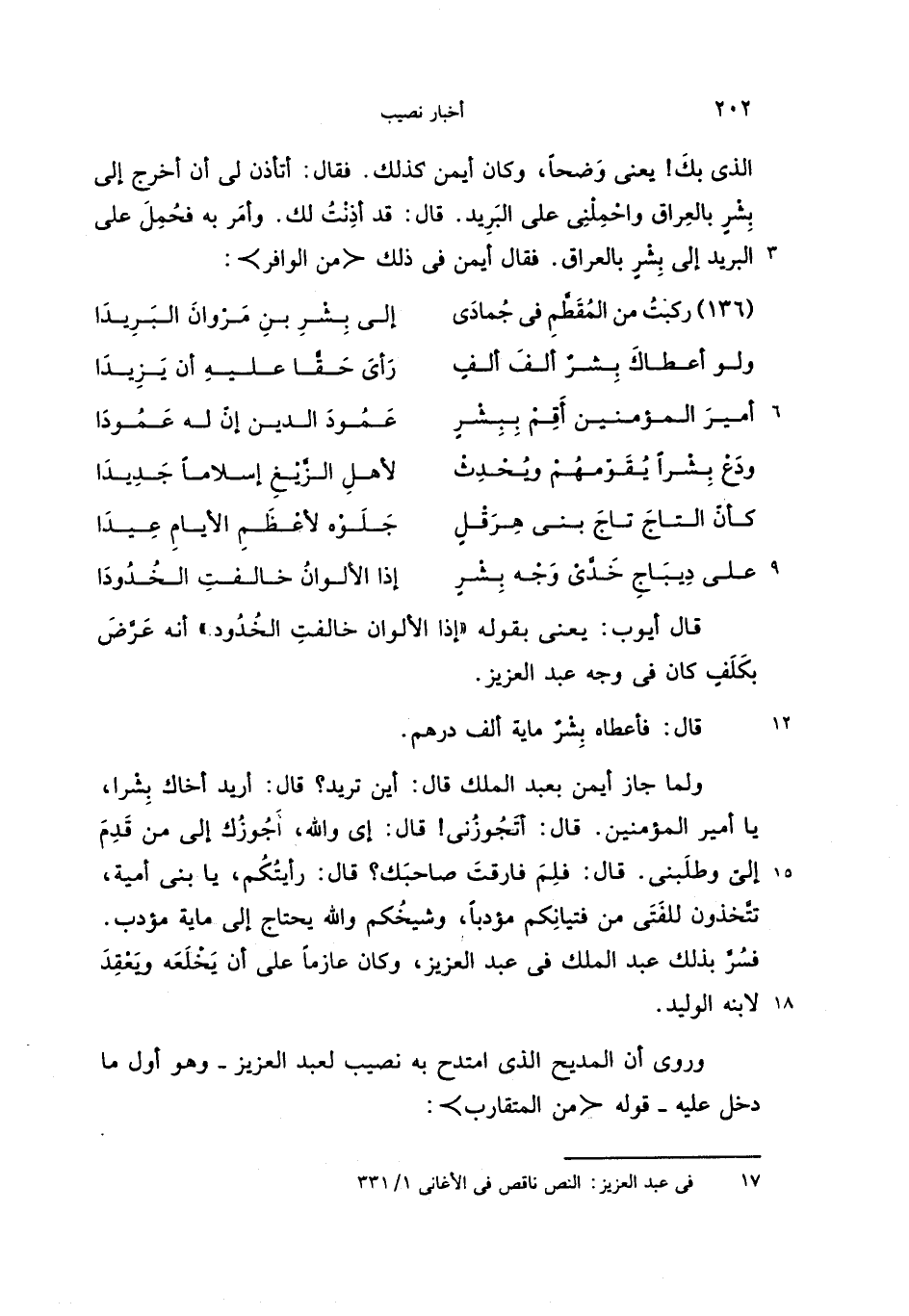 وروى أن المديح الذى امتدح به نصيب لعبد العزيز-وهو أول ما دخل عليه-قوله <من المتقارب>: