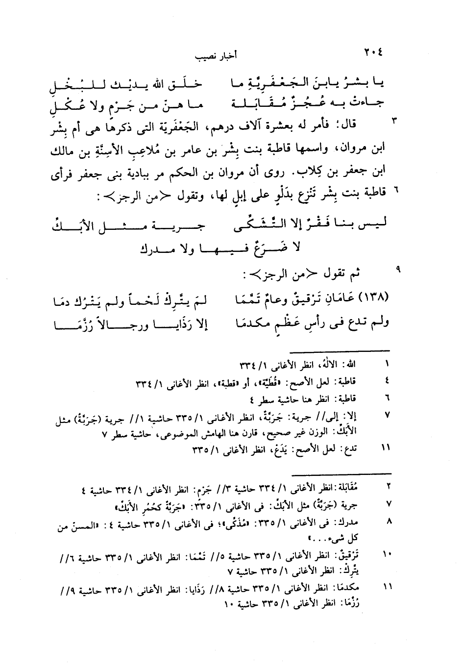 (2) مقابلة: انظر الأغانى 1/ 334 حاشية /3/جرم: انظر الأغانى 1/ 334 حاشية 4