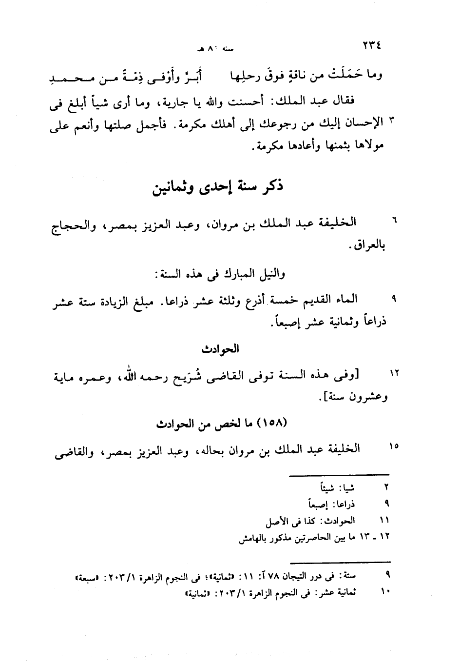 (9) ستة: فى درر التيجان 78 آ:11: «ثمانية»؛ فى النجوم الزاهرة 1/ 203: «سبعة»