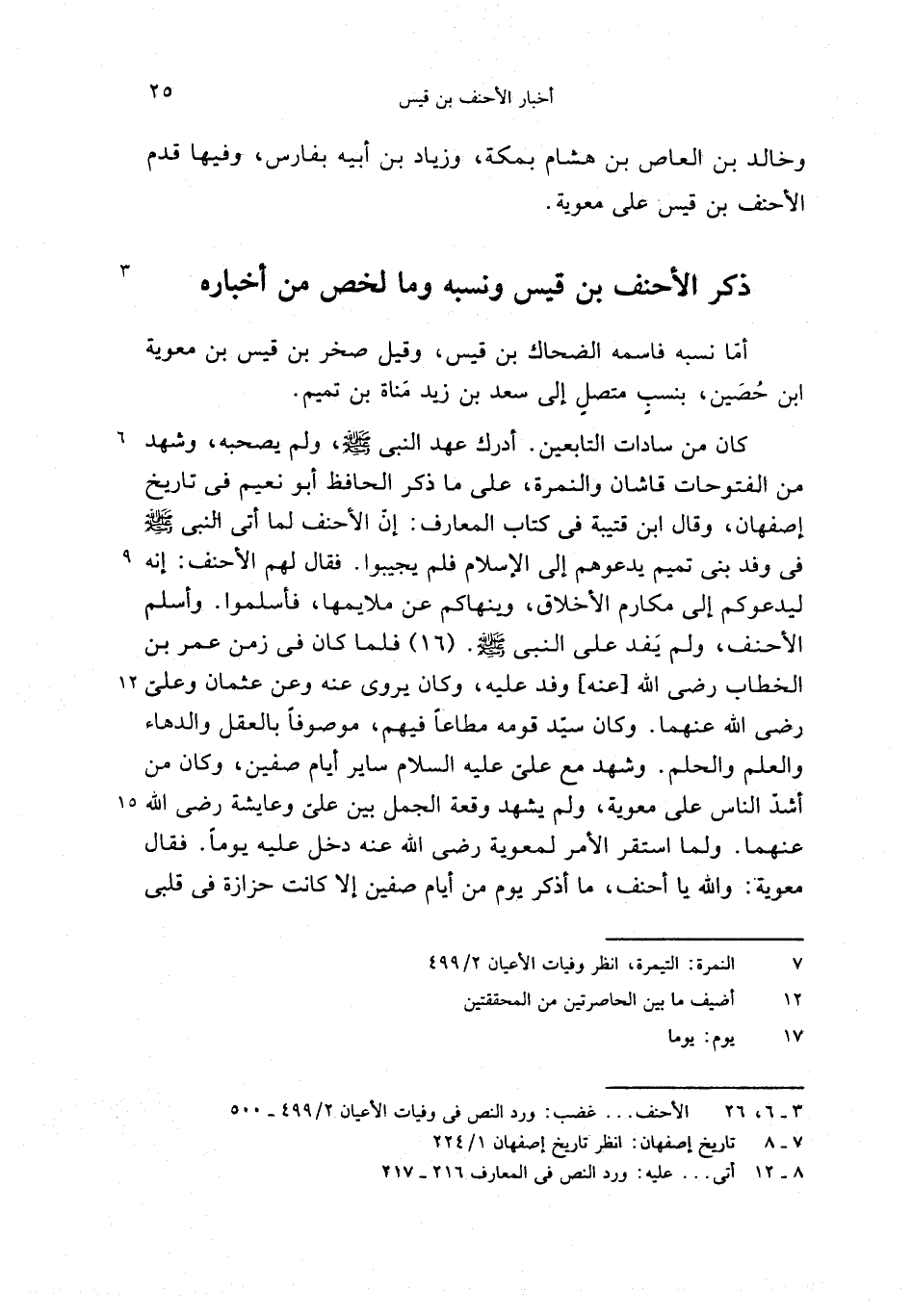(3 - 6،26) الأحنف. . . غضب: ورد النص فى وفيات الأعيان 2/ 499 - 500