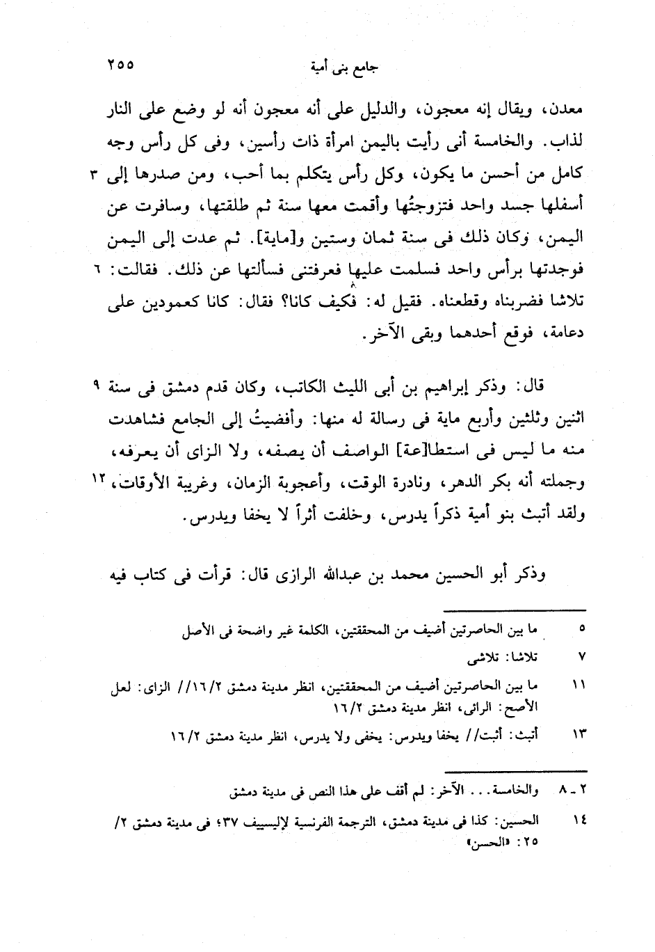 (14) الحسين: كذا فى مدينة دمشق، الترجمة الفرنسية لإليسييف 37؛ فى مدينة دمشق 2/ 25: «الحسن»
