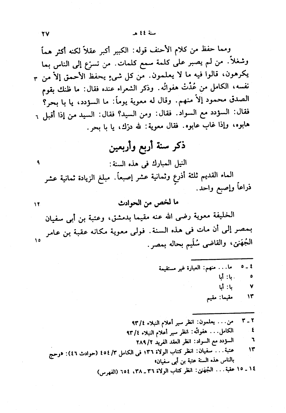 (13) عتبة. . . سفيان: انظر كتاب الولاة 36؛ فى الكامل 3/ 454 (حوادث 46): «وحج بالناس هذه السنة عتبة بن أبى سفيان»