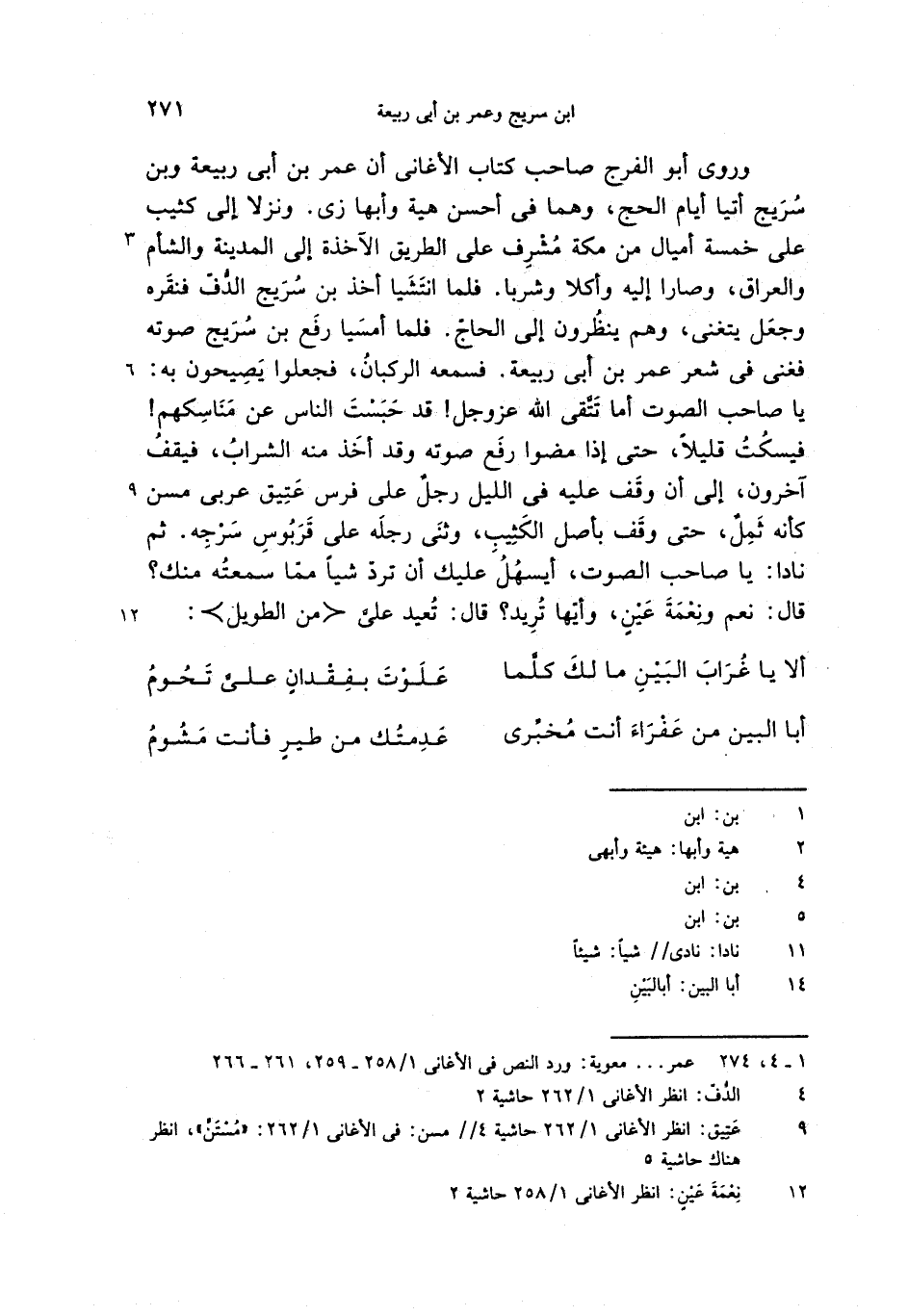 (1 - 4،274) عمر. . . معوية: ورد النص فى الأغانى 1/ 258 - 259،261 - 266