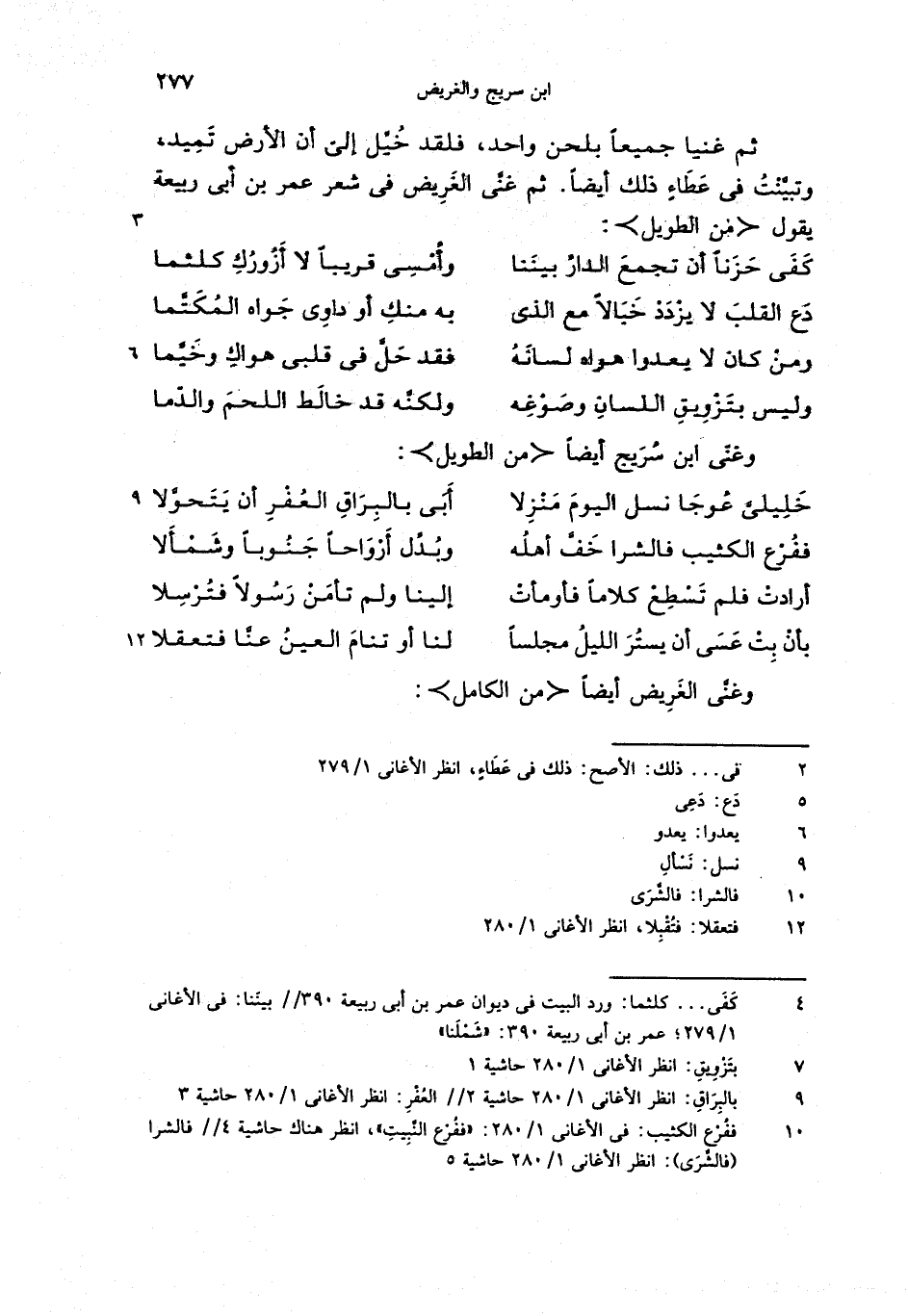ثم غنيا جميعا بلحن واحد، فلقد خيّل إلىّ أن الأرض تميد، وتبيّنت فى عطاء ذلك أيضا. ثم غنّى الغريض فى شعر عمر بن أبى ربيعة يقول <من الطويل>: