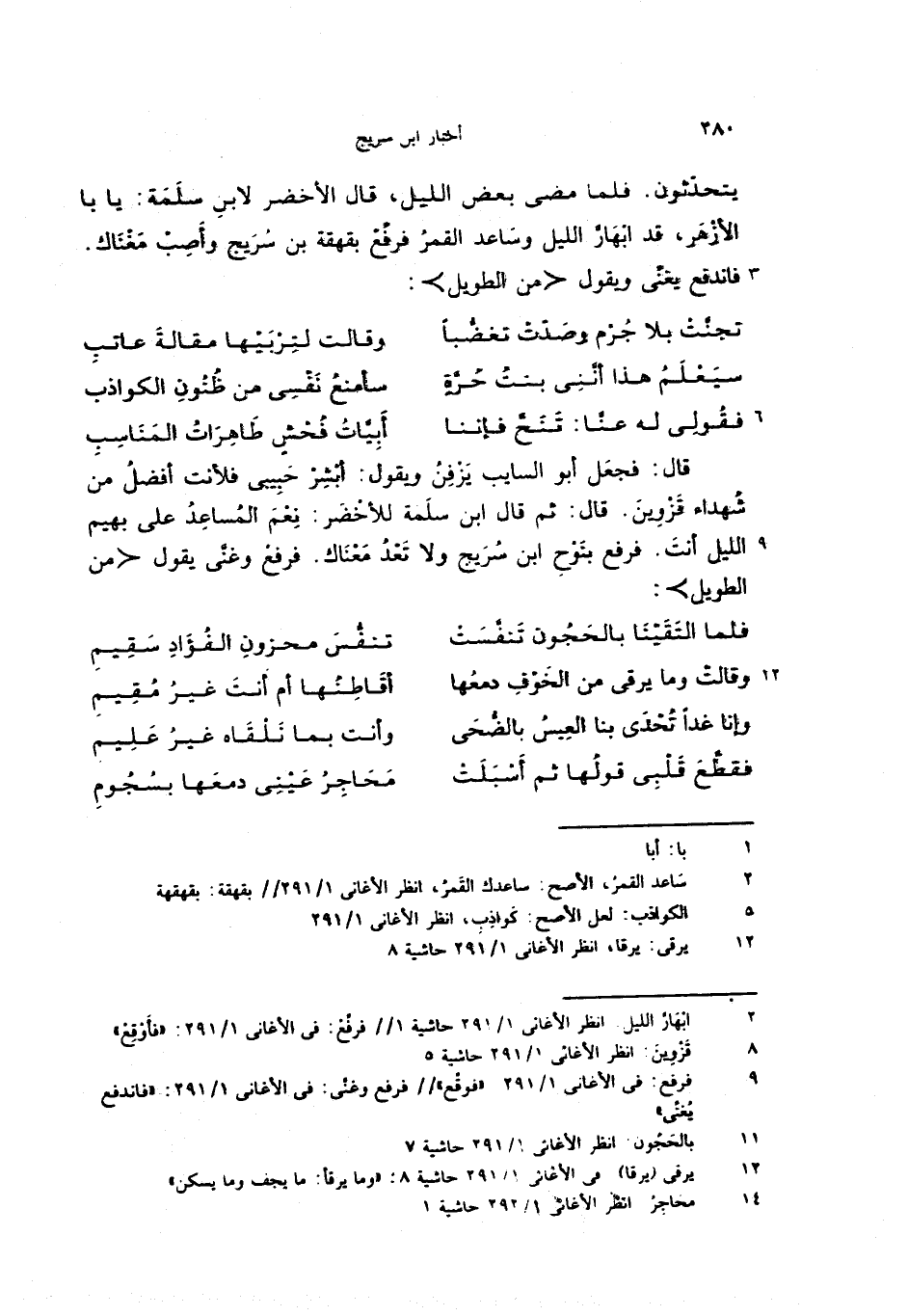 (9) فرفع: فى الأغانى 1/ 291: «فوقّع» //فرفع وغنّى: فى الأغانى 1/ 291: «فاندفع يغنّى»