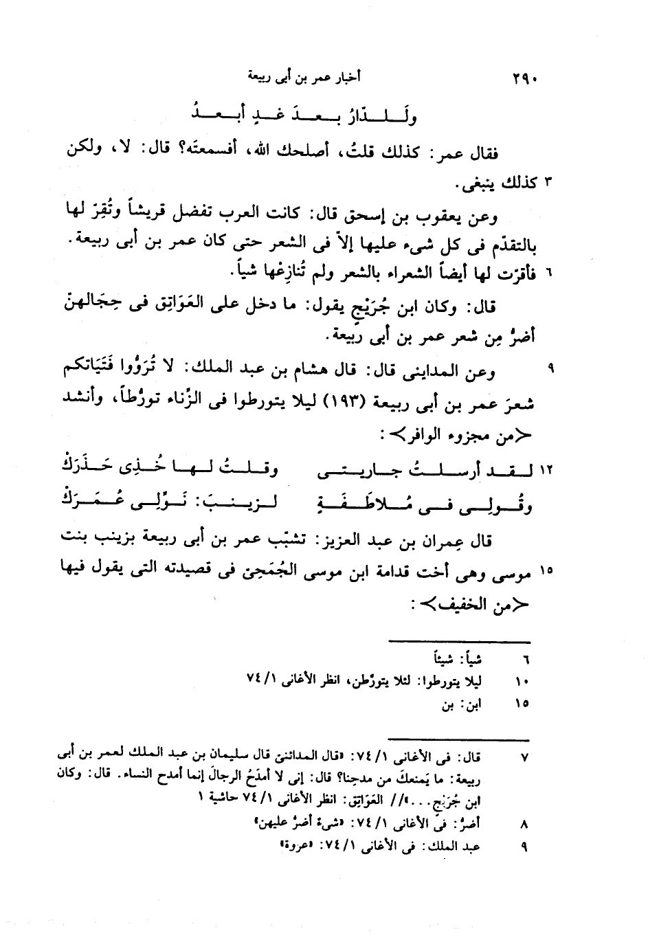 (7) قال: فى الأغانى 1/ 74: «قال المدائنىّ قال سليمان بن عبد الملك لعمر بن أبى ربيعة: ما يمنعك من مدحنا؟ قال: إنى لا أمدح الرجال إنما أمدح النساء. قال: وكان ابن جريح. . .» //العواتق: انظر الأغانى 1/ 74 حاشية 1