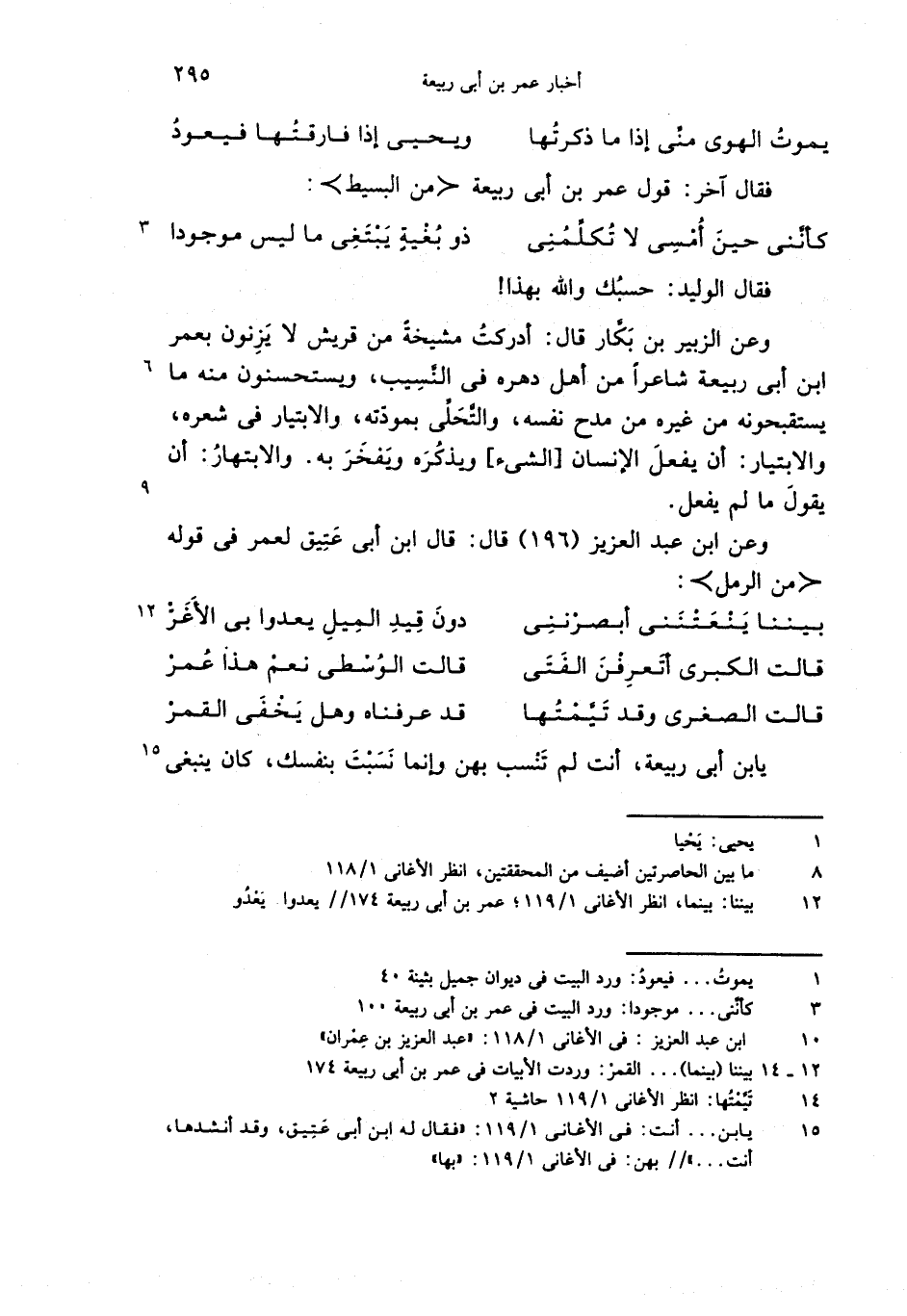 وعن ابن عبد العزيز (196) قال: قال ابن أبى عتيق لعمر فى قوله <من الرمل>: