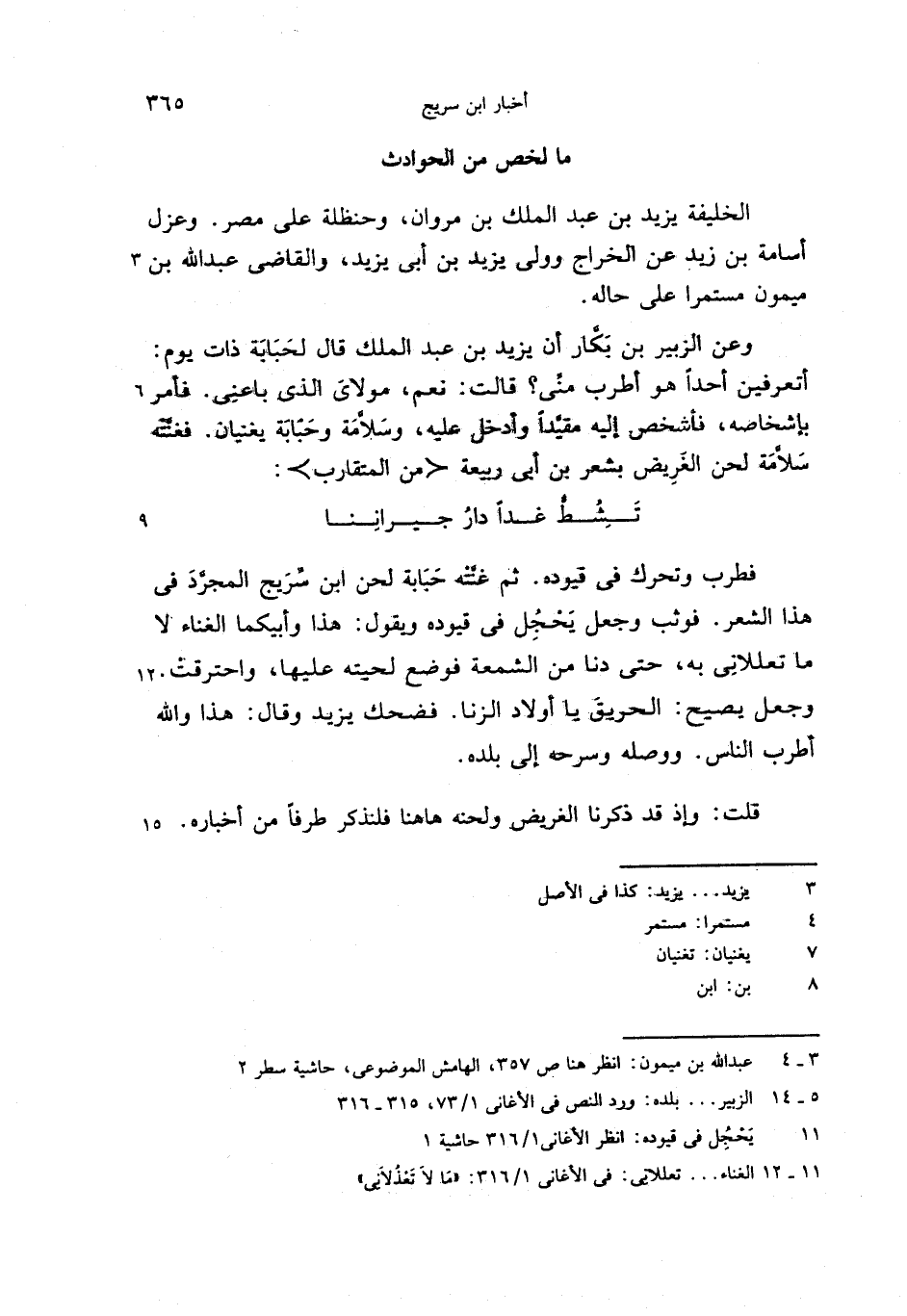 (11 - 12) الغناء. . . تعللانى: فى الأغانى 1/ 316: «ما لا تعذلانى»