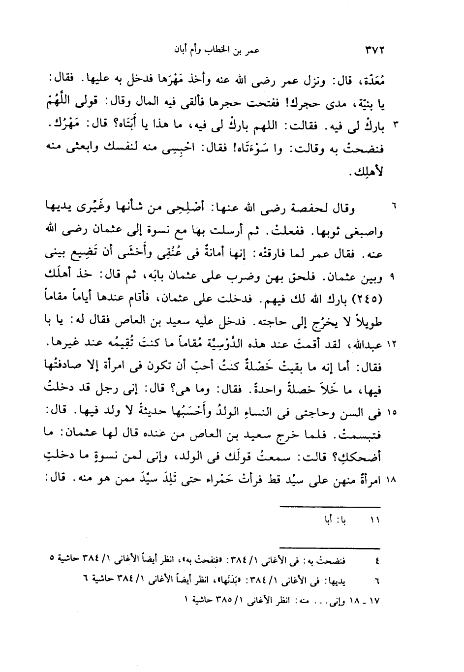 وقال لحفصة رضى الله عنها: أصلحى من شأنها وغيّرى يديها واصبغى ثوبها. ففعلت. ثم أرسلت بها مع نسوة إلى عثمان رضى الله عنه. فقال عمر لما فارقته: إنها أمانة فى عنقى وأخشى أن تضيع بينى وبين عثمان. فلحق بهن وضرب على عثمان بابه، ثم قال: خذ أهلك (245) بارك الله لك فيهم. فدخلت على عثمان، فأقام عندها أياما مقاما طويلا لا يخرج إلى حاجته. فدخل عليه سعيد بن العاص فقال له: يا با عبد الله، لقد أقمت عند هذه الدّوسيّة مقاما ما كنت تقيمه عند غيرها.