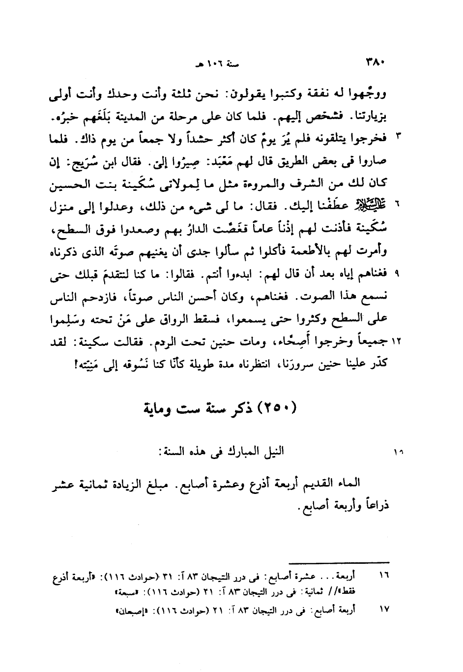 الماء القديم أربعة أذرع وعشرة أصابع. مبلغ الزيادة ثمانية عشر ذراعا وأربعة أصابع.