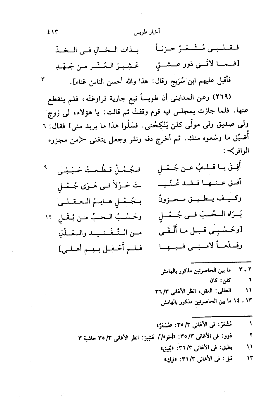 (13) قبل: فى الأغانى 3/ 36: «فيك»