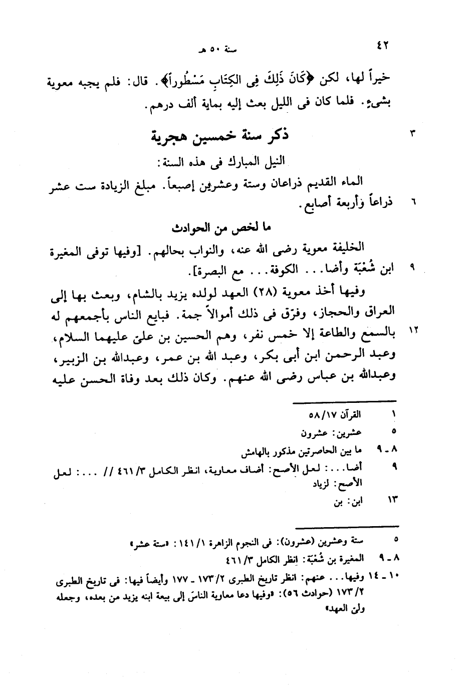الخليفة معوية رضى الله عنه، والنواب بحالهم. [وفيها توفى المغيرة ابن شعبة وأضا. . . الكوفة. . . مع البصرة].