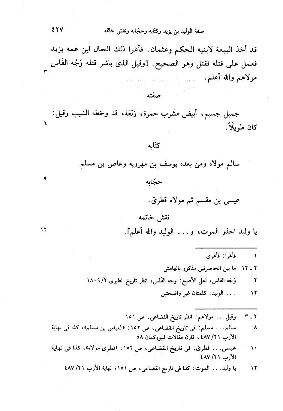 (8) سالم. . . مسلم: فى تاريخ القضاعى، ص 152: «العباس بن مسلم»، كذا فى نهاية الأرب 21/ 487، قارن مقالات لبيوركمان 58