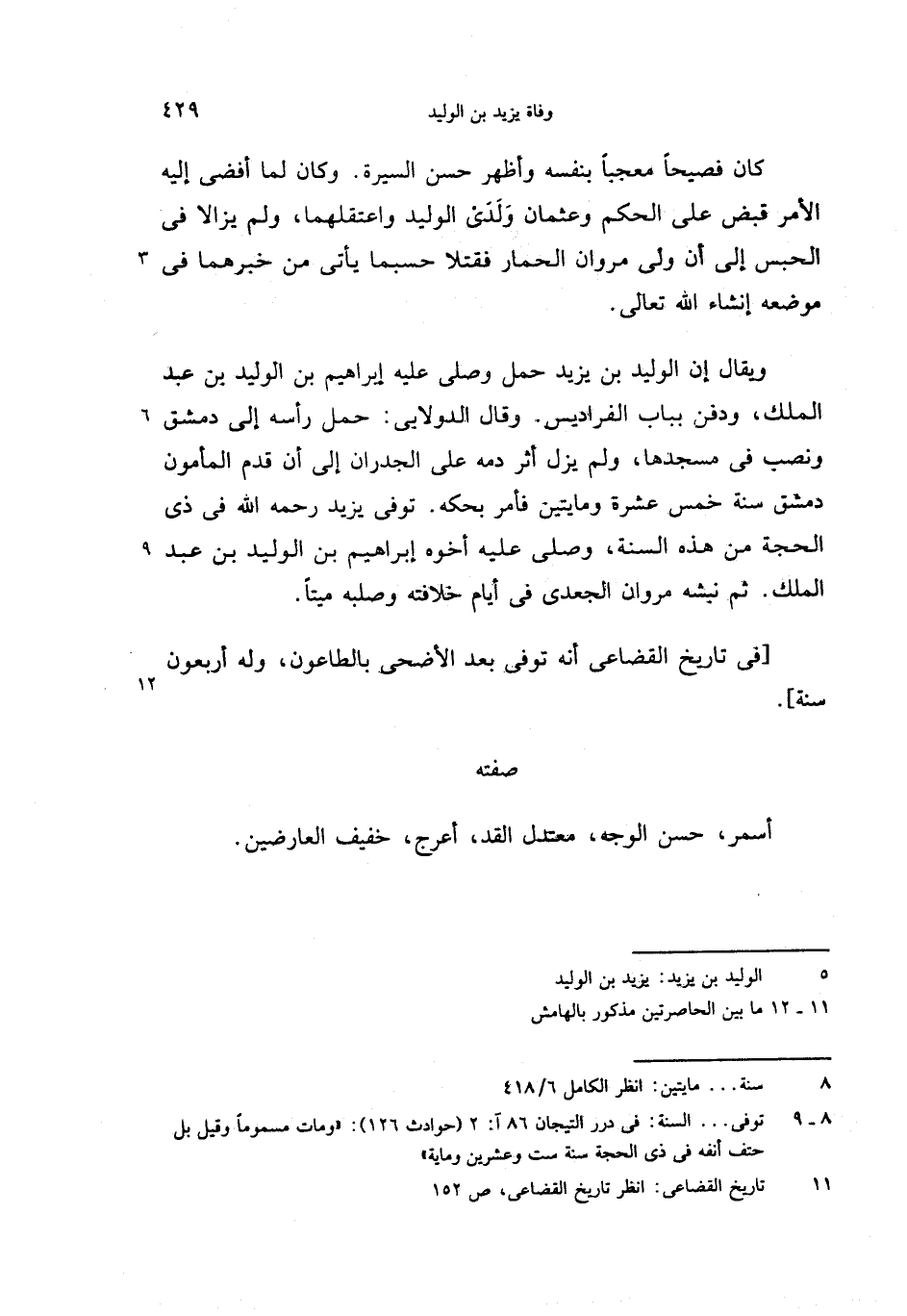 (8 - 9) توفى. . . السنة: فى درر التيجان 86 آ:2 (حوادث 126): «ومات مسموما وقيل بل حتف أنفه فى ذى الحجة سنة ست وعشرين وماية»