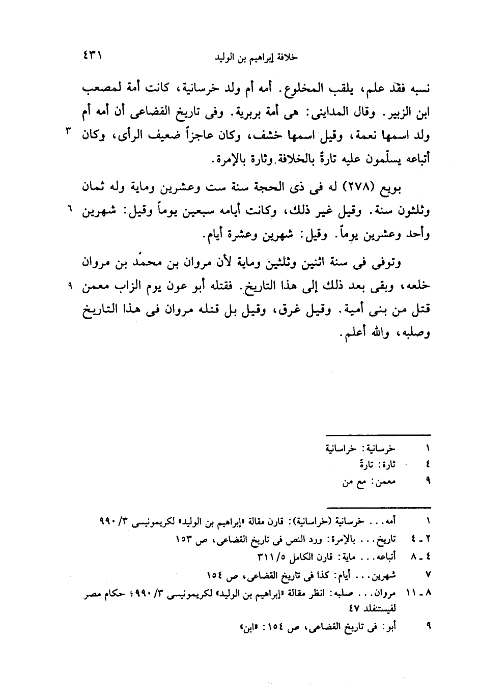 (8 - 11) مروان. . . صلبه: انظر مقالة «إبراهيم بن الوليد» لكريمونيسى 3/ 990؛ حكام مصر لفيستنفلد 47
