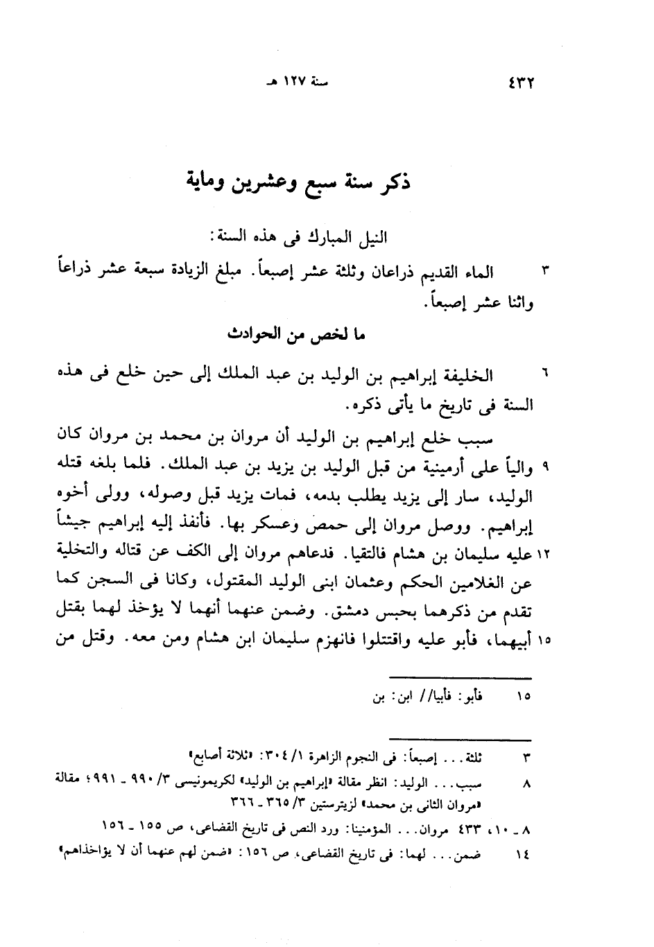 الخليفة إبراهيم بن الوليد بن عبد الملك إلى حين خلع فى هذه السنة فى تاريخ ما يأتى ذكره.