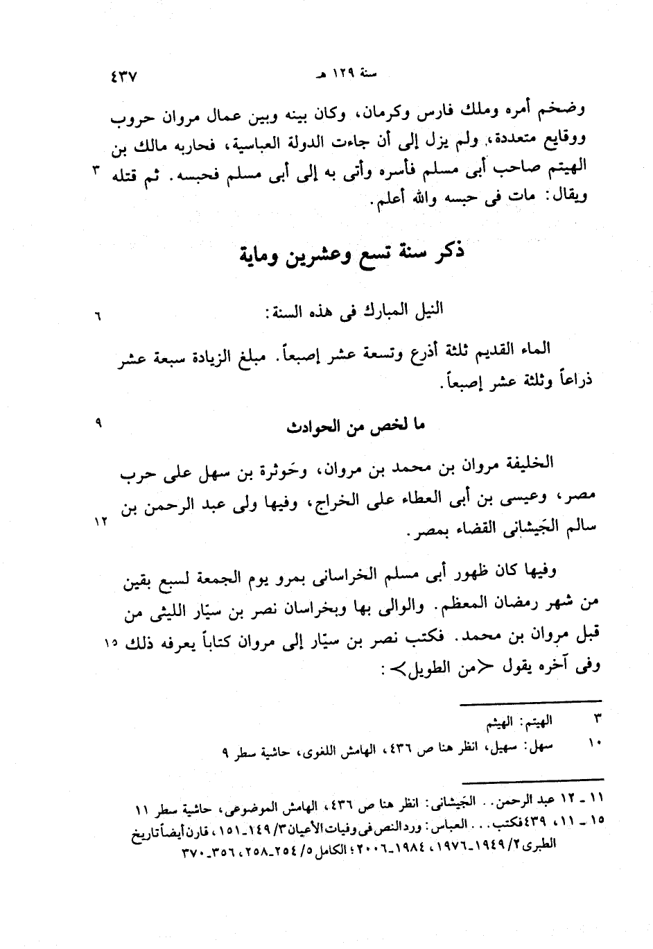 (15 - 11،439) فكتب. . . العباس: ورد النص فى وفيات الأعيان 3/ 149 - 151، قارن أيضا تاريخ الطبرى 2/ 1949 - 1976،1984 - 2006؛ الكامل 5/ 254 - 258،356 - 370