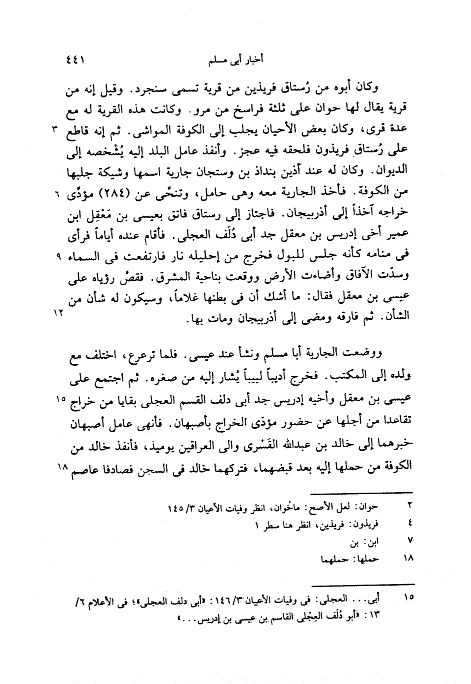 (15) أبى. . . العجلى: فى وفيات الأعيان 3/ 146: «أبى دلف العجلى»؛ فى الأعلام 6/ 13: «أبو دلف العجلى القاسم بن عيسى بن إدريس. . .»