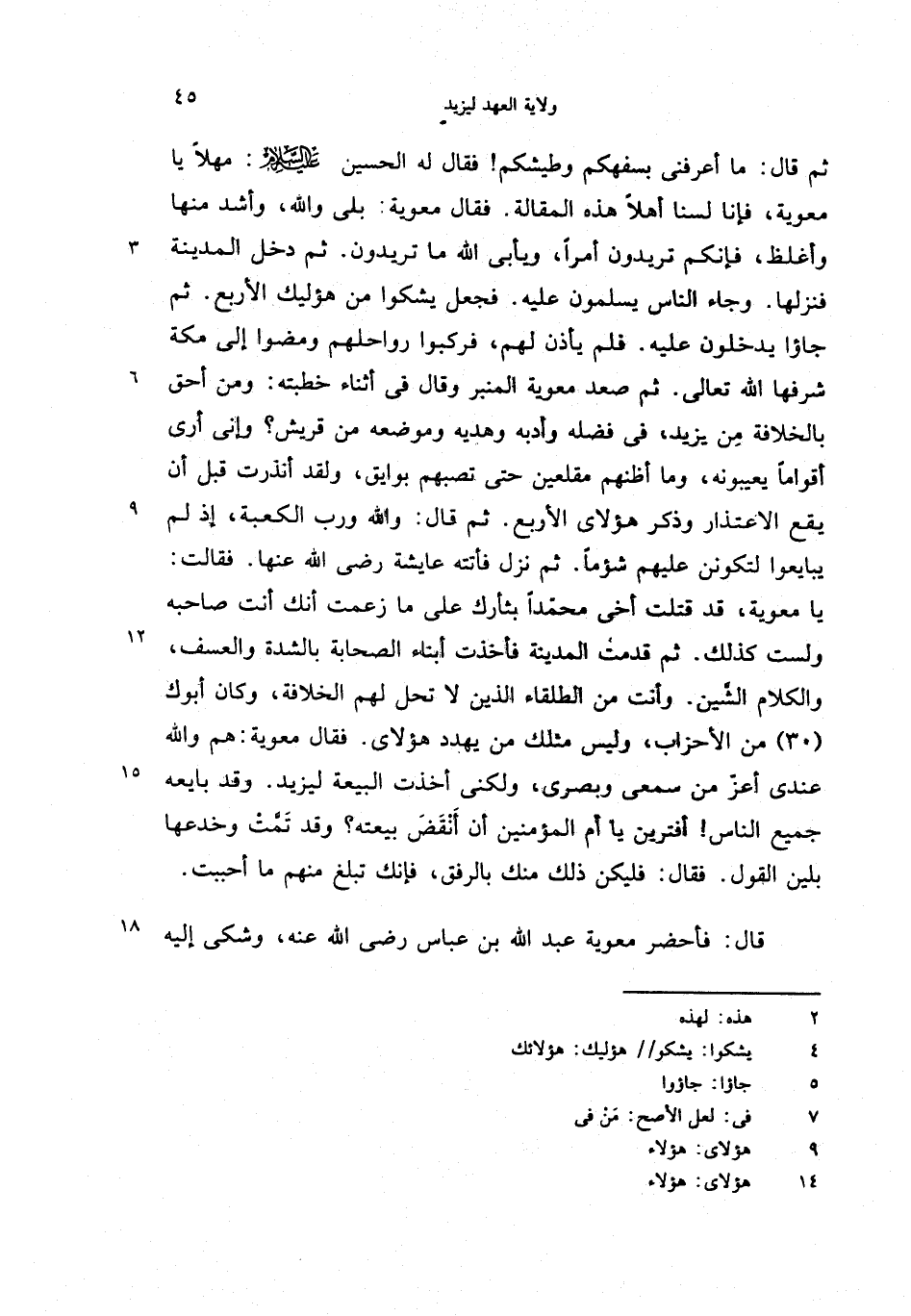 قال: فأحضر معوية عبد الله بن عباس رضى الله عنه، وشكى إليه