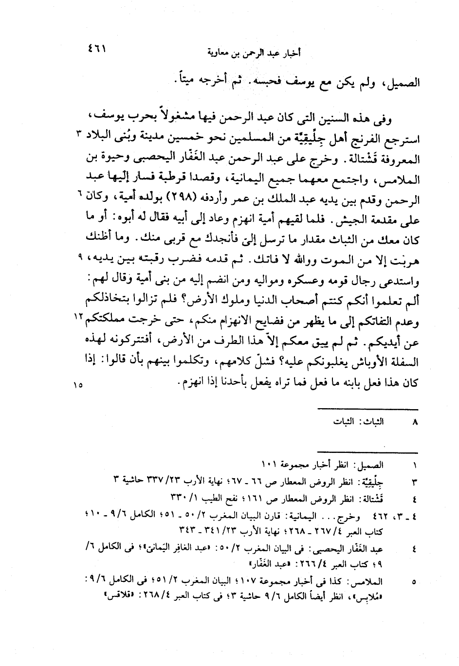 (4) عبد الغفّار اليحصبى: فى البيان المغرب 2/ 50: «عبد الغافر اليمانىّ»؛ فى الكامل 6/ 9؛ كتاب العبر 4/ 266: «عبد الغفّار»