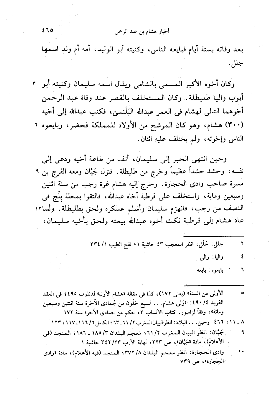 الأولى من السنة» (يعنى 172)، كذا فى مقالة «هشام الأول» لدنلوب 495؛ فى العقد الفريد 4/ 490: «ولى هشام. . . لسبع خلون من جمادى الآخرة سنة اثنتين وسبعين ومائة»، وفقا لزامبور، كتاب الأنساب 3، حكم من جمادى الآخرة سنة 172
