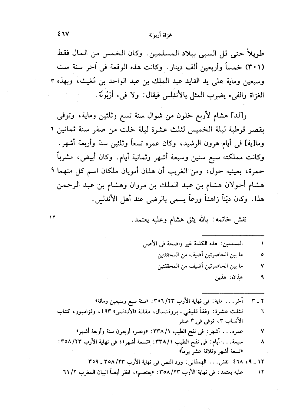 (6) لثلث عشرة: وفقا لليفي-بروفنسال، مقالة «الأندلس» 493، ولزامبور، كتاب الأنساب 3، توفى فى 3 صفر