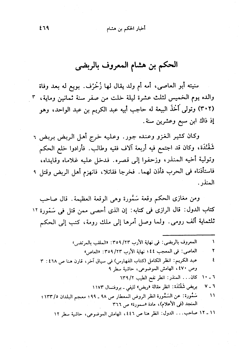 ومن مغازى الحكم وقعة سمّورة وهى الوقعة العظيمة. قال صاحب كتاب الدول: قال الرازى فى كتابه: إن الذى أحصى ممن قتل فى سمّورة ثلثماية ألف رومى. ولما وصل أمرها إلى ملك رومة، كتب إلى الحكم