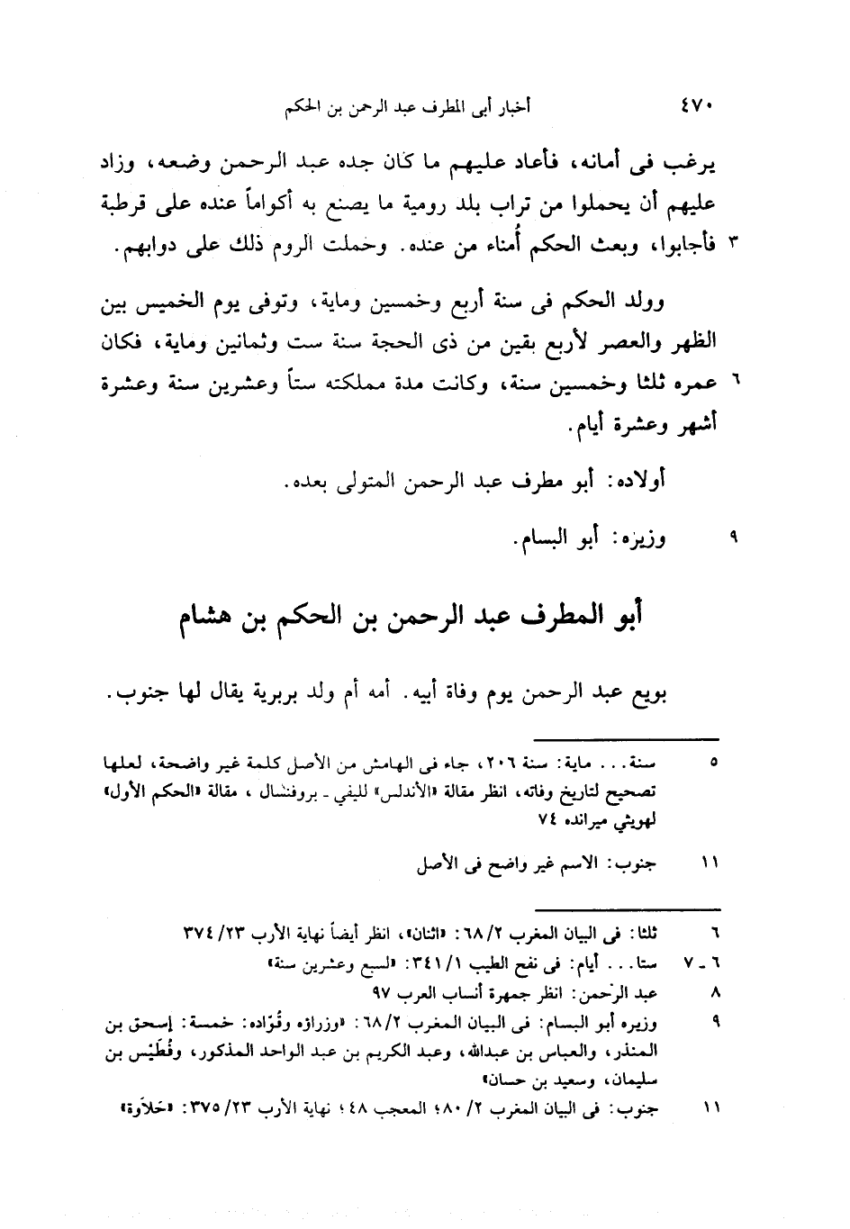 (9) وزيره أبو البسام: فى البيان المغرب 2/ 68: «وزراؤه وقوّاده: خمسة: إسحق بن المنذر، والعباس بن عبد الله، وعبد الكريم بن عبد الواحد المذكور، وفطيس بن سليمان، وسعيد بن حسان»