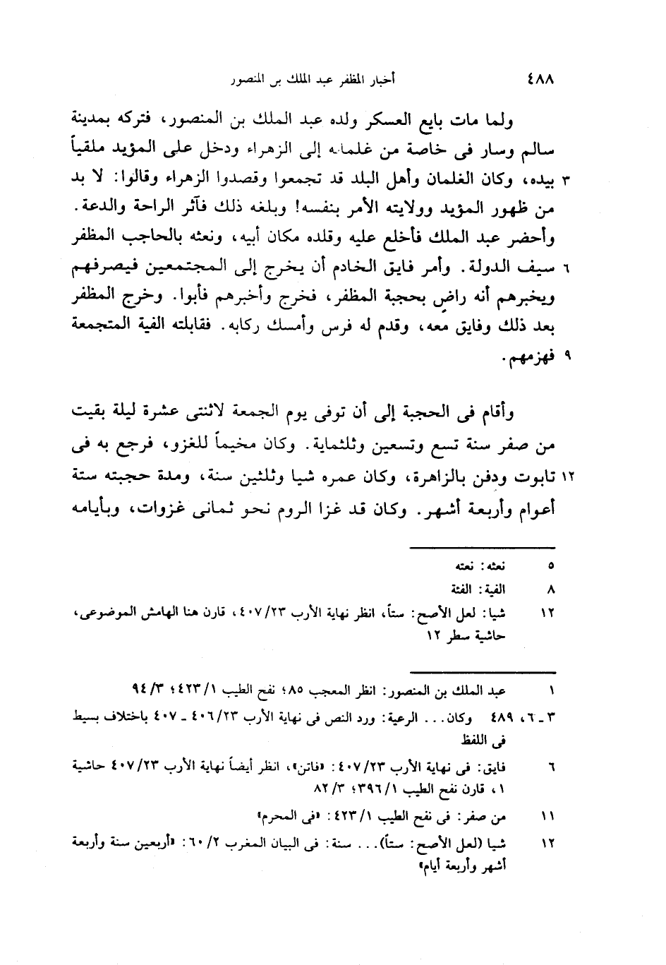 (1) عبد الملك بن المنصور: انظر المعجب 85؛ نفح الطيب 1/ 423؛3/ 94