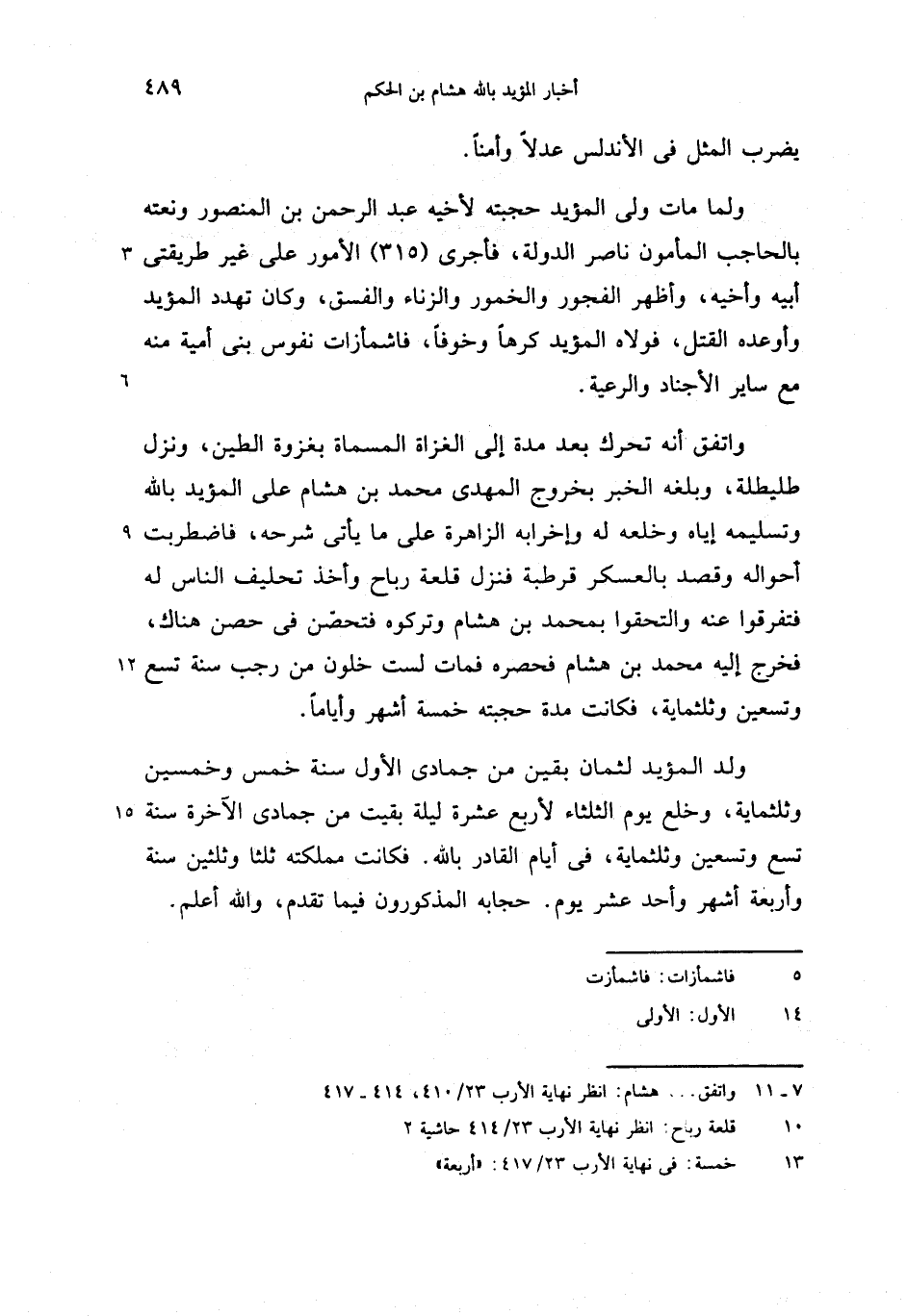 (7 - 11) واتفق. . . هشام: انظر نهاية الأرب 23/ 410،414 - 417