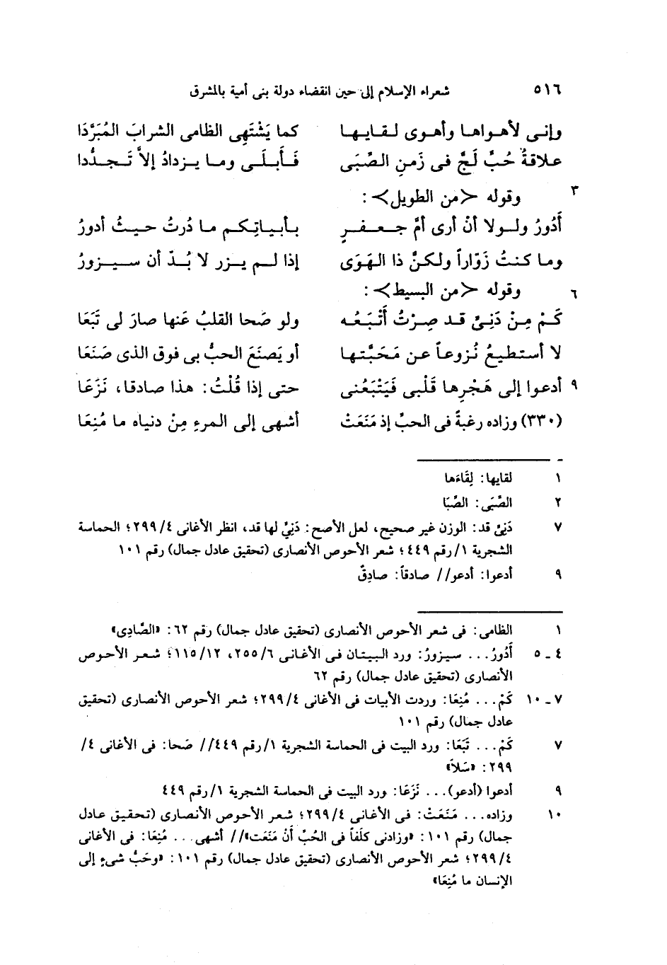 (7 - 10) كم. . . منعا: وردت الأبيات فى الأغانى 4/ 299؛ شعر الأحوص الأنصارى (تحقيق عادل جمال) رقم 101