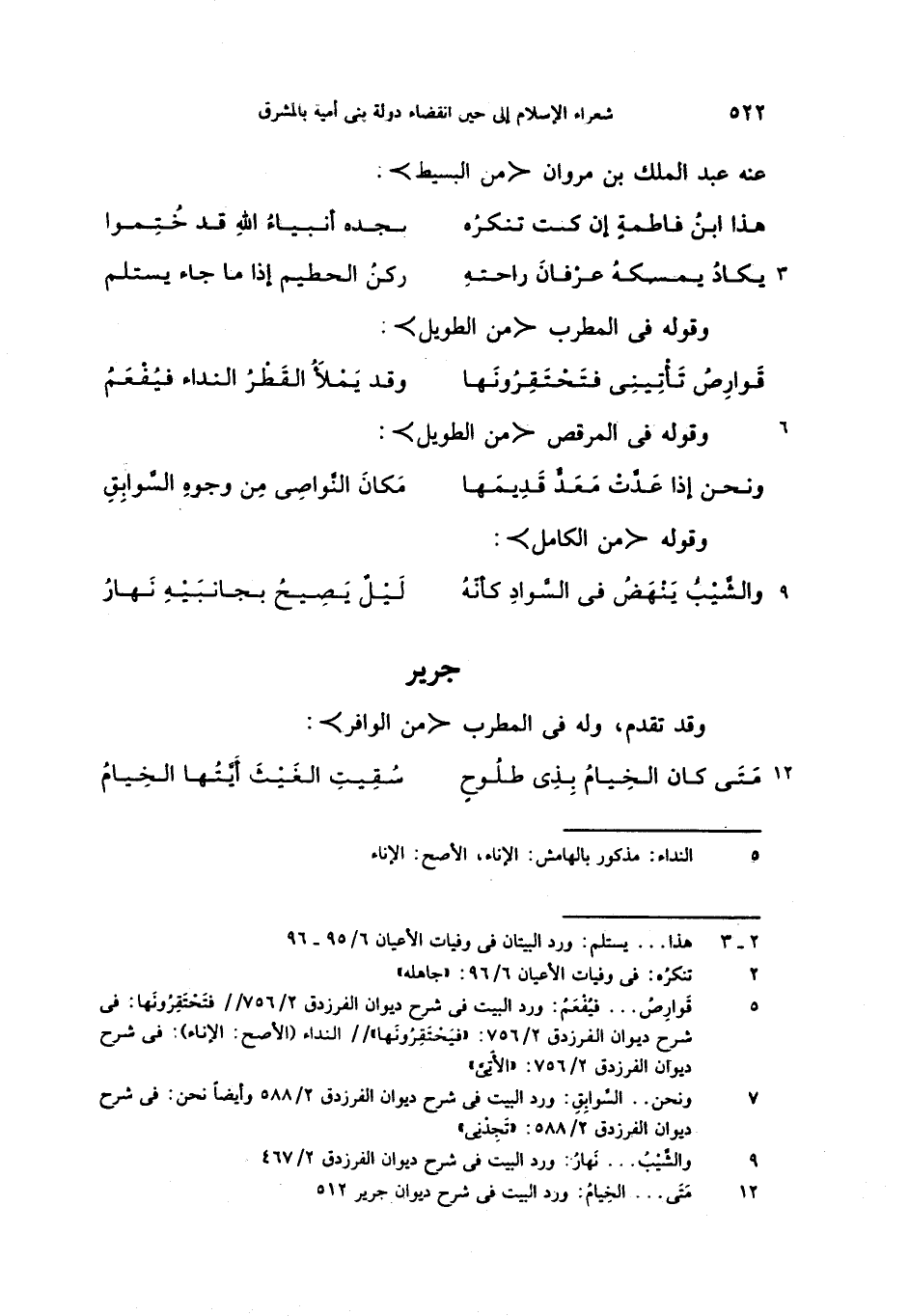 (12) متى. . . الخيام: ورد البيت فى شرح ديوان جرير 512