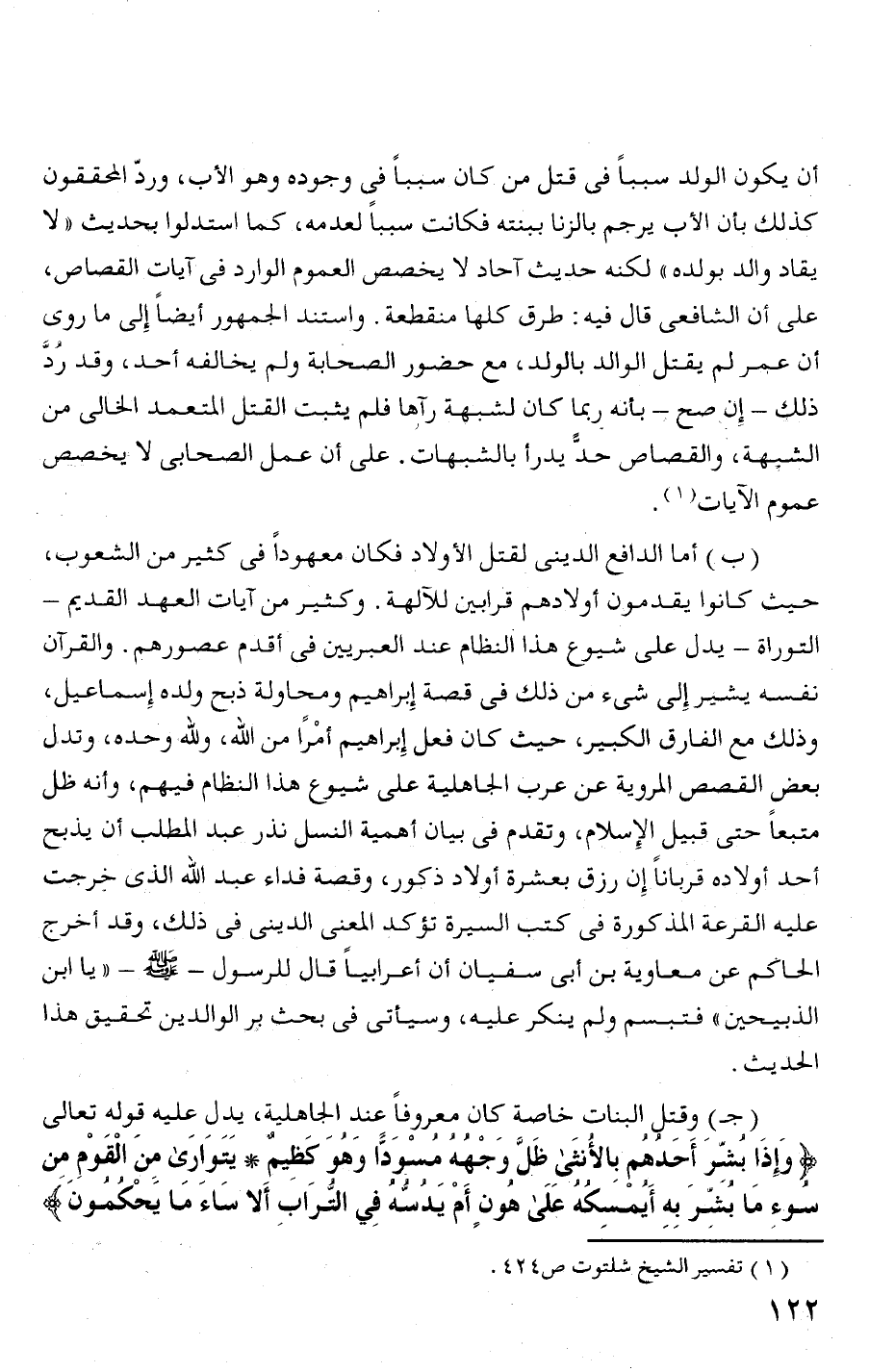 (1) تفسير الشيخ شلتوت ص 4 42.