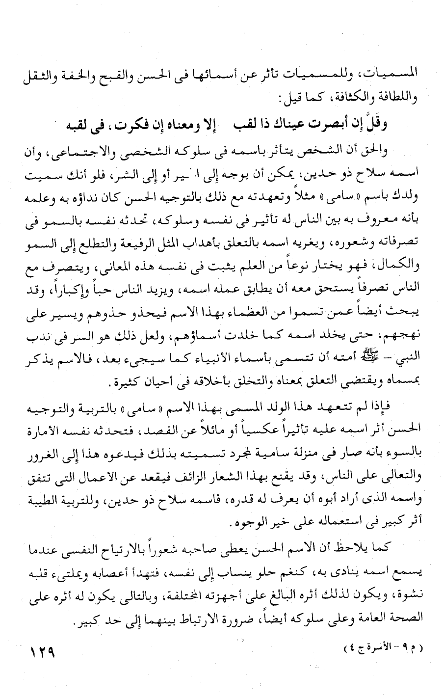 تصرفاته ونخمعوره، ويغريه اسمه بالتعلق بأهداب المثل الرفيعة والتطلع إلى السمو