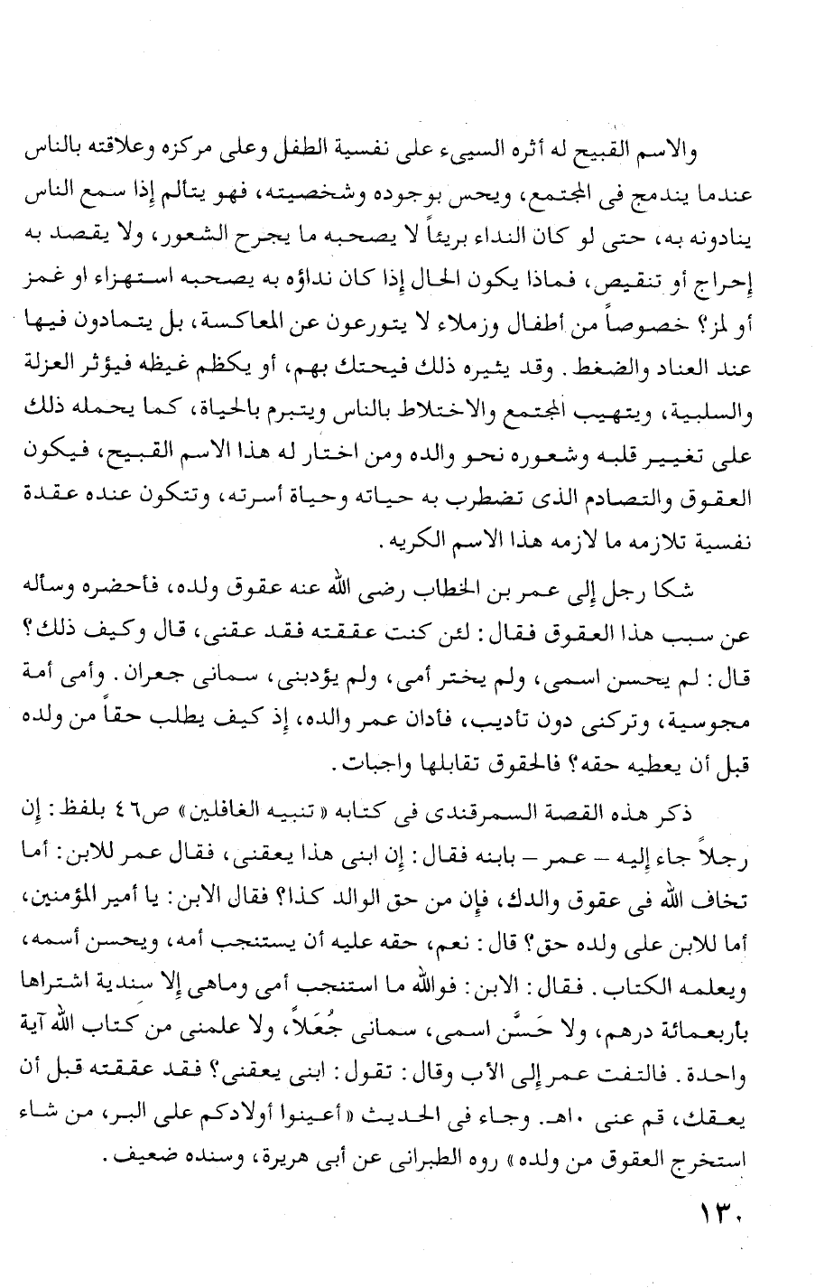واحدة. شالتفت عمر إلى الأب وقال: تقول: ابنى يعقنى ئج فقد عققمه قبل أدن