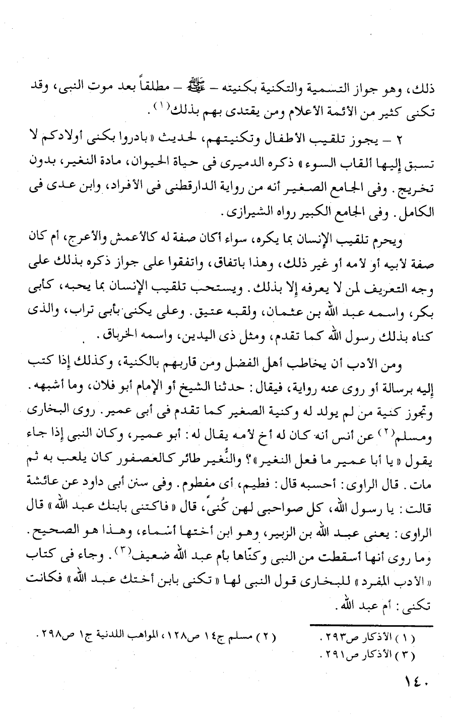 2 - يجوز تلقيب الأ طفال وتكنيتهم، لحديث ((بادروا بكنى أولادكم لا