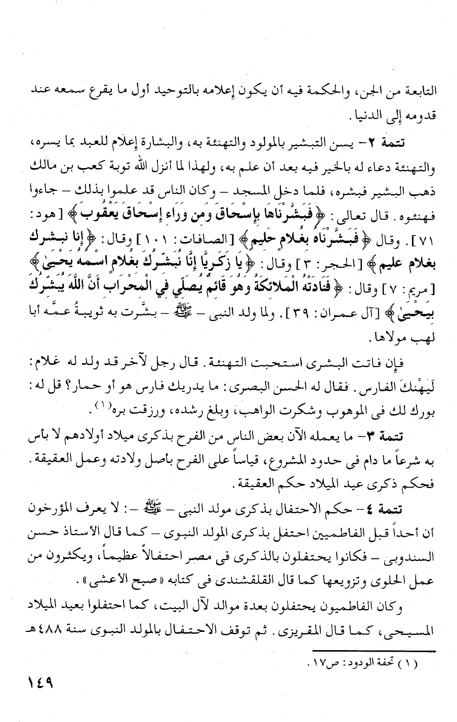 تتيمة 2 - يسن التبشير بالمولود والتهنئة به، والبشارة إعلأم للعبد بما يسره،