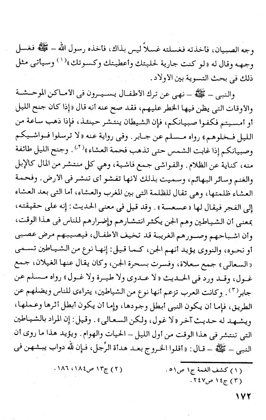 النبى - كليط - قال: " أقلوا الخروج بعد هدأة الرجل، فإن لله دواب يبثهن فى