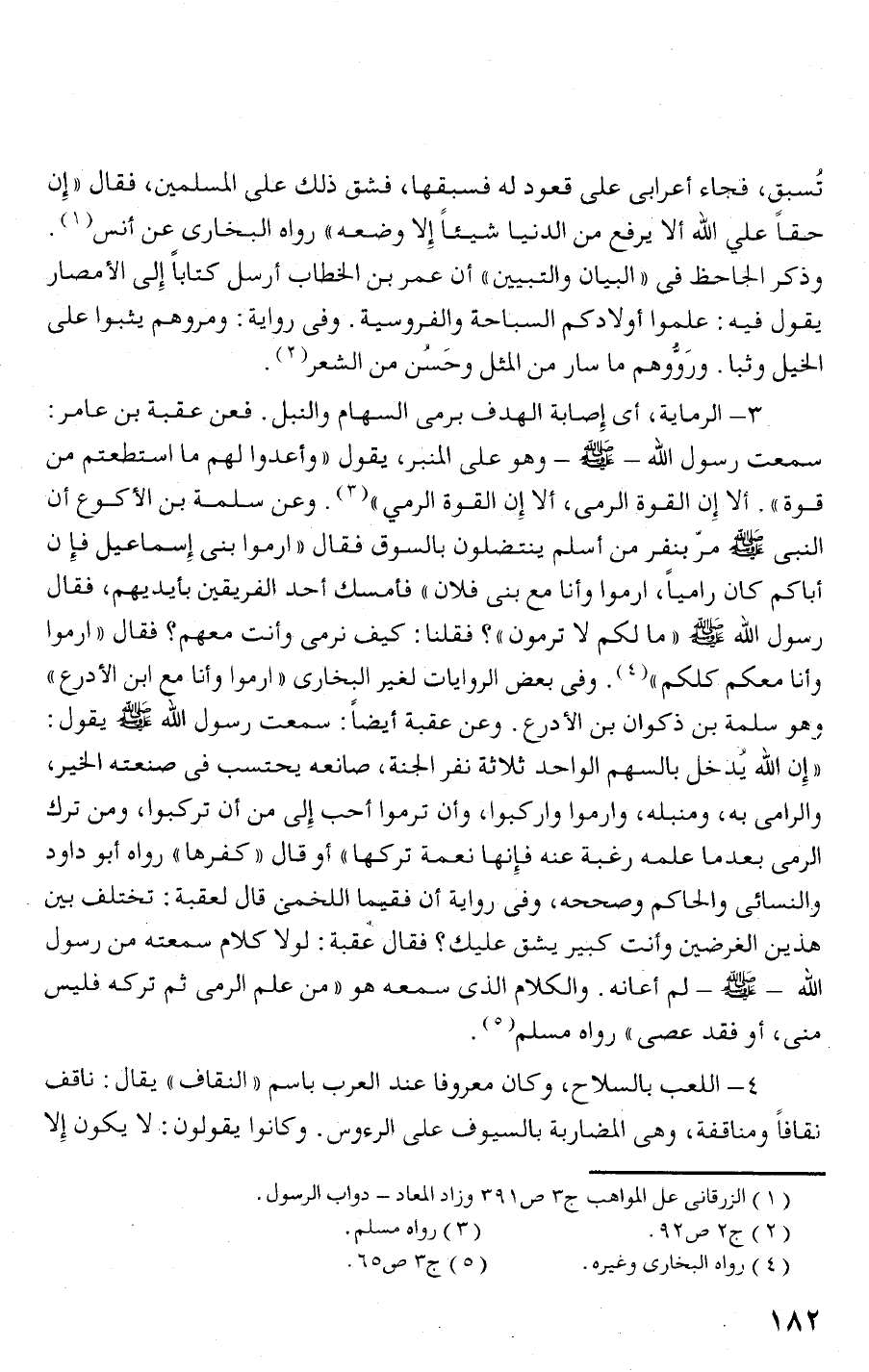 والرامى به، ومنبله، وارموا واركبوا، وأن ترموا أ حب إلى من أن تركبوا، ومن ترك