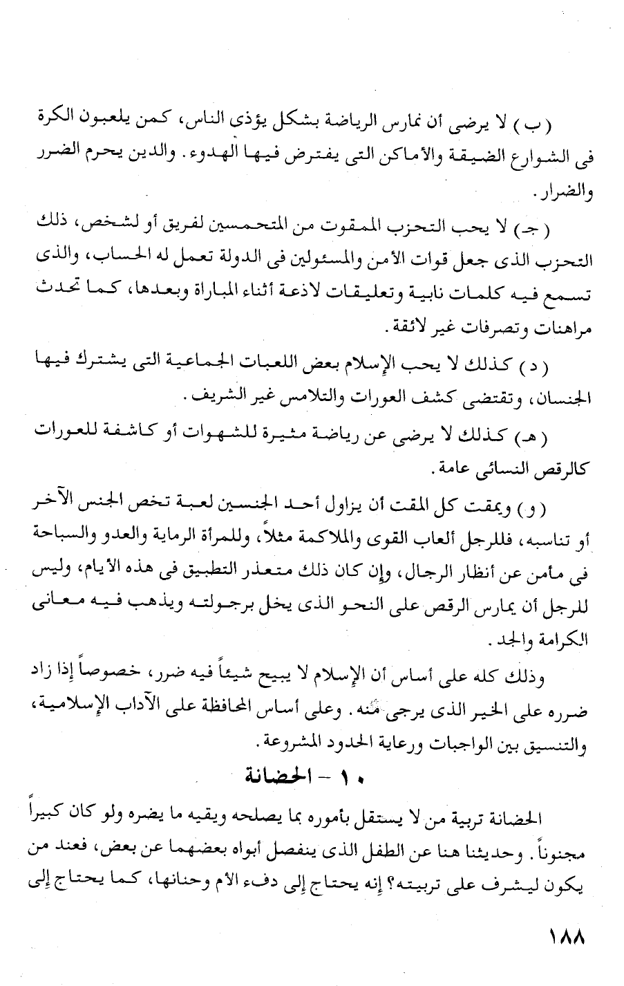 (هـ) كذلك لا يرضى عن رياضة مثيرة للشهوات أو كاشفة للعورات