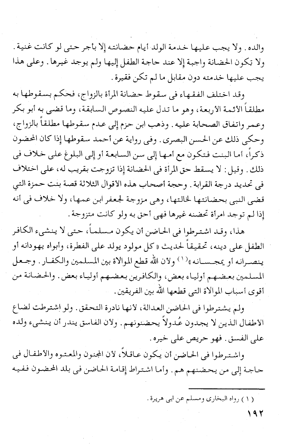 ولا تكون الحضانة واجبة إلا عند حاجة الطفل إليها ولم يوجد غيرها. وعلى هذا