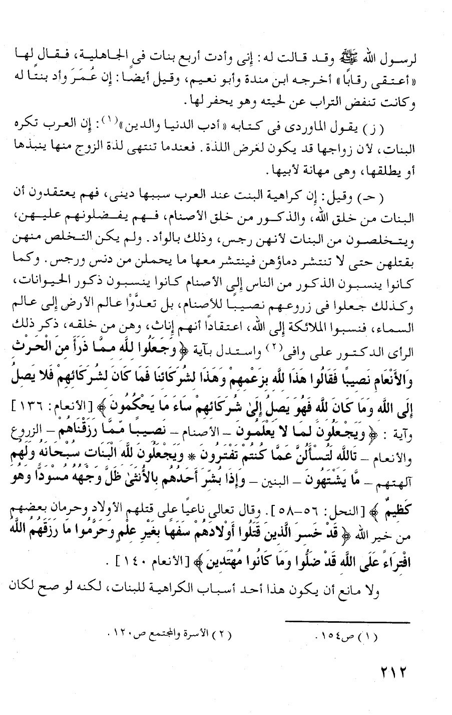 (!) وقيل: إن كراهية البنت عند العرب سببها دينى،! هم يعتقدون أ ن