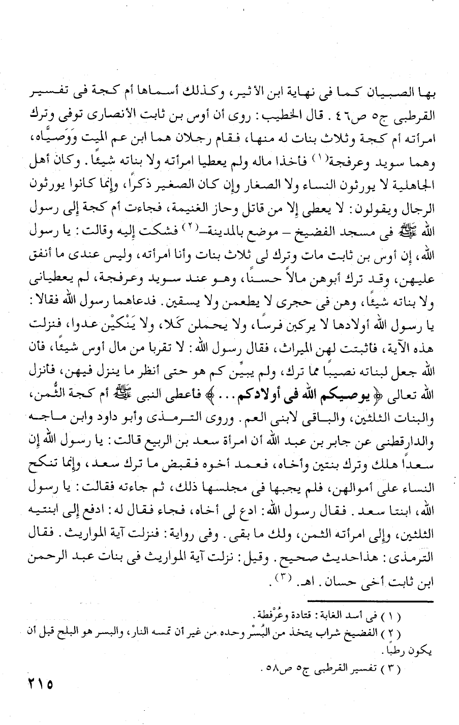 الترمذى: هذاحد يث صحيح. وقيل: نزلت آية المواريث فى بنات عبد الرحمن