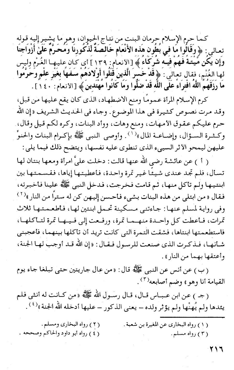 يئدها ولم يهنها ولم يؤثر ولده - يعنى الذكور - عليها أدخله النه ا"لجنه " (4).