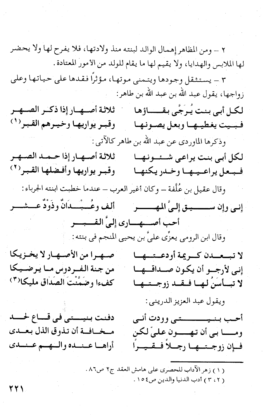 لكل أبى بنت يراعى شئونها ثلاثة أصهار إذا حمد الصهر
