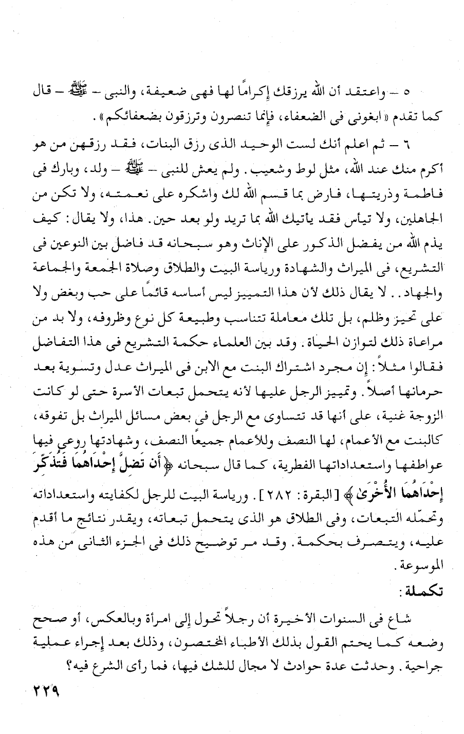 يذم الله من يفضل الذ ثور على الإناث وهو سبحانه قد فاضل بين النوعين فى